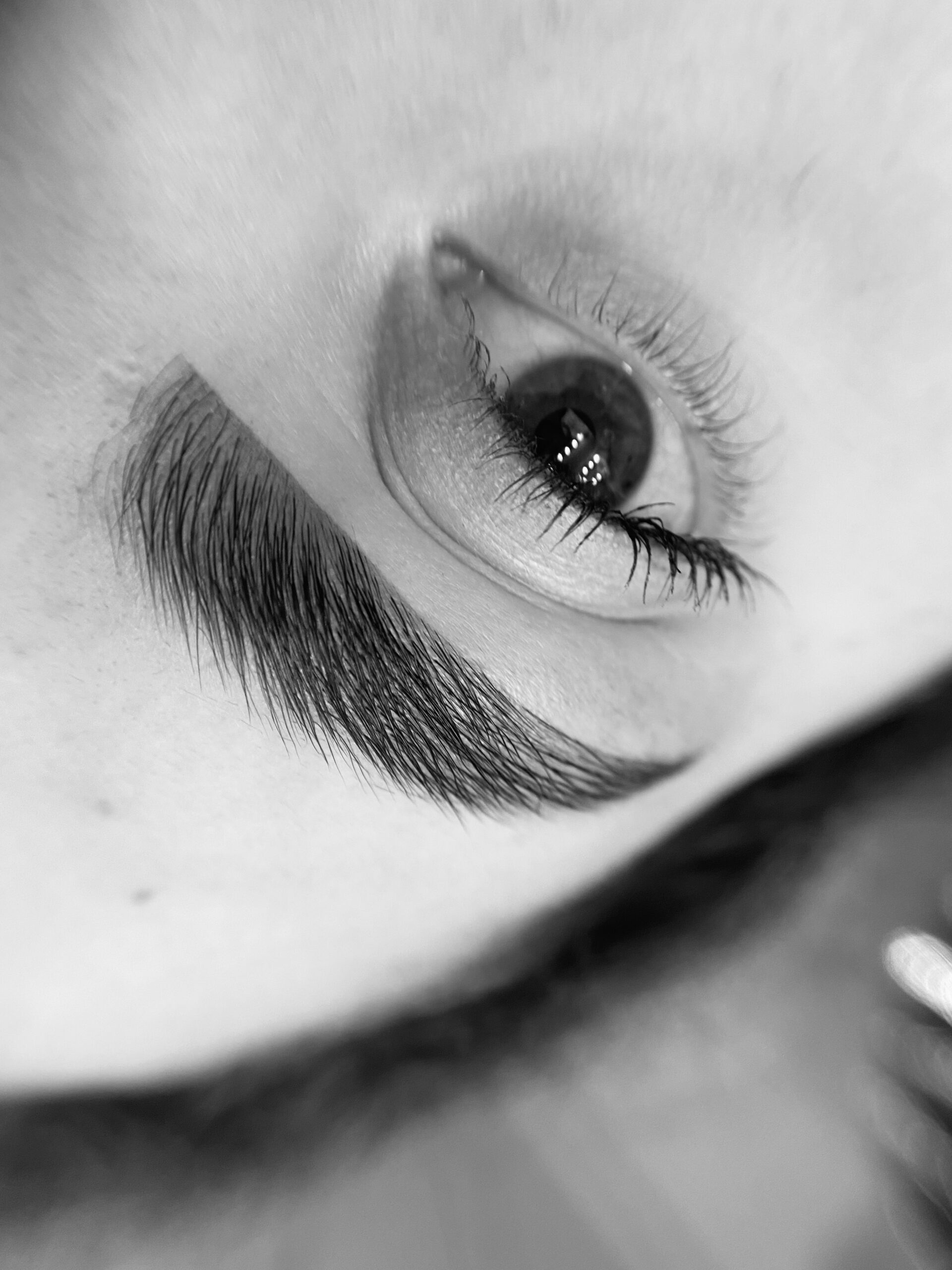 Zabieg laminacji, który nadaje brwiom pożądany kształt, wygładza je i sprawia, że wyglądają na grubsze i bardziej uporządkowane.